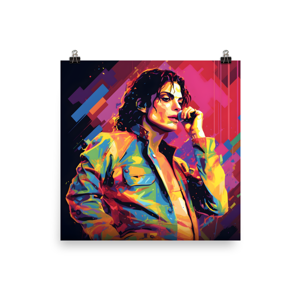Celebrate the King of Pop with this vibrant and lively pop-art poster. With its dynamic colors and illustration of Michael Jackson, this poster is sure to provide an energetic pop of style to any space.